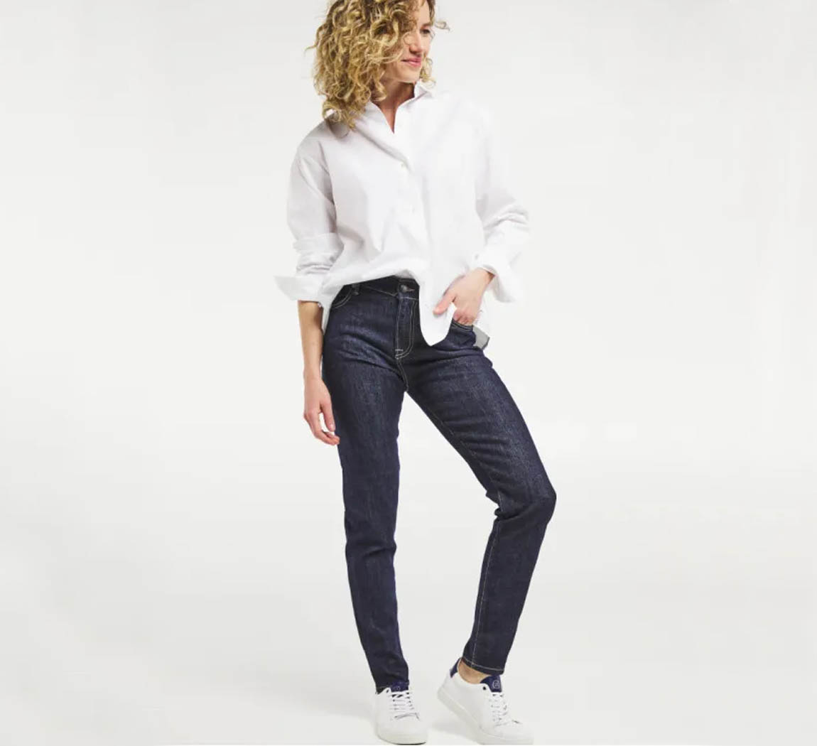 Le jean Julia de la Gentle Factory est un denim féminin éco-conçu, fabriqué à partir de coton biologique et recyclé pour un impact réduit sur l’environnement. Sa coupe slim et sa taille haute sculptent la silhouette tout en offrant confort et style au quotidien.